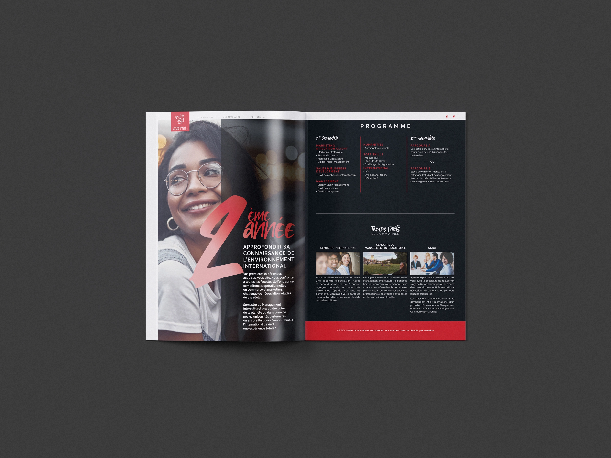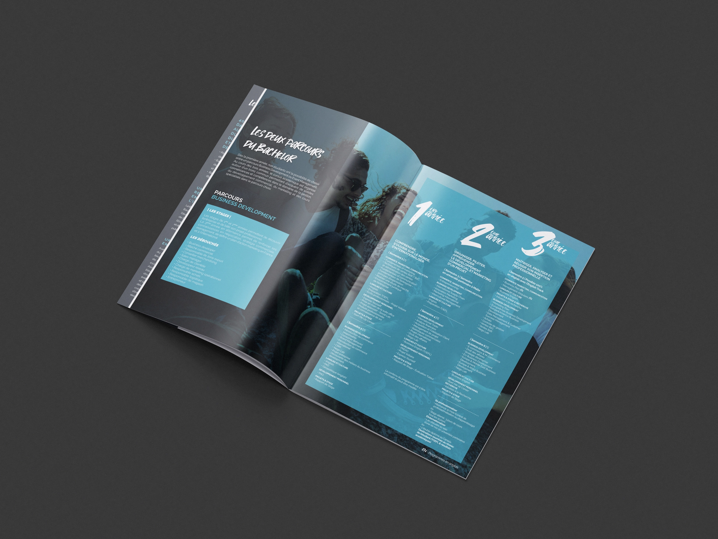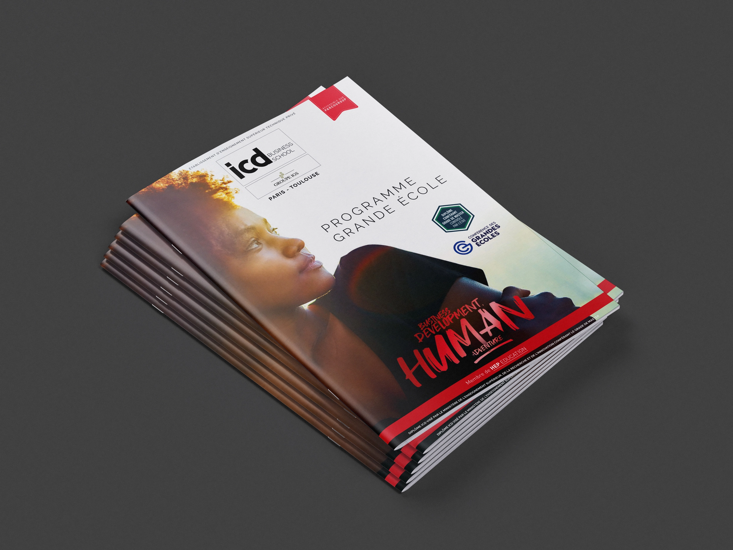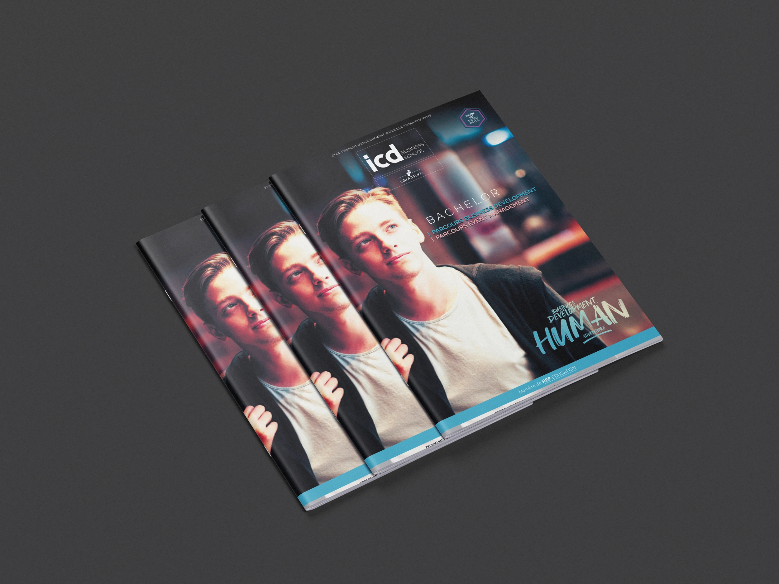 J’ai participé à la réalisation d’un lot de brochures pour l’ICD, école du Groupe IGS, centrées sur le commerce. Ces brochures ont pour objectif de présenter les différentes filières de l’école et leur portée dans le monde du travail, à l’échelle nationale et internationale. Chaque brochure a été conçue pour mettre en avant les atouts des formations, les débouchés professionnels et les témoignages d’anciens étudiants. Le design est professionnel et moderne, reflétant l’excellence et l’ouverture internationale de l’ICD.