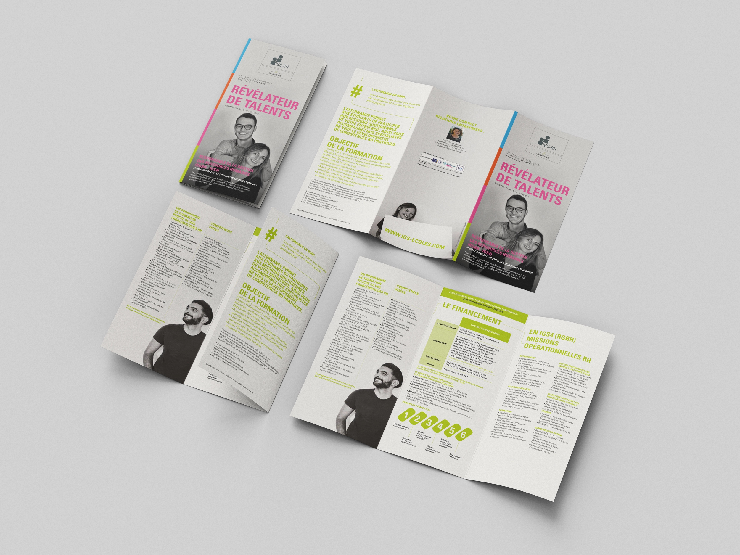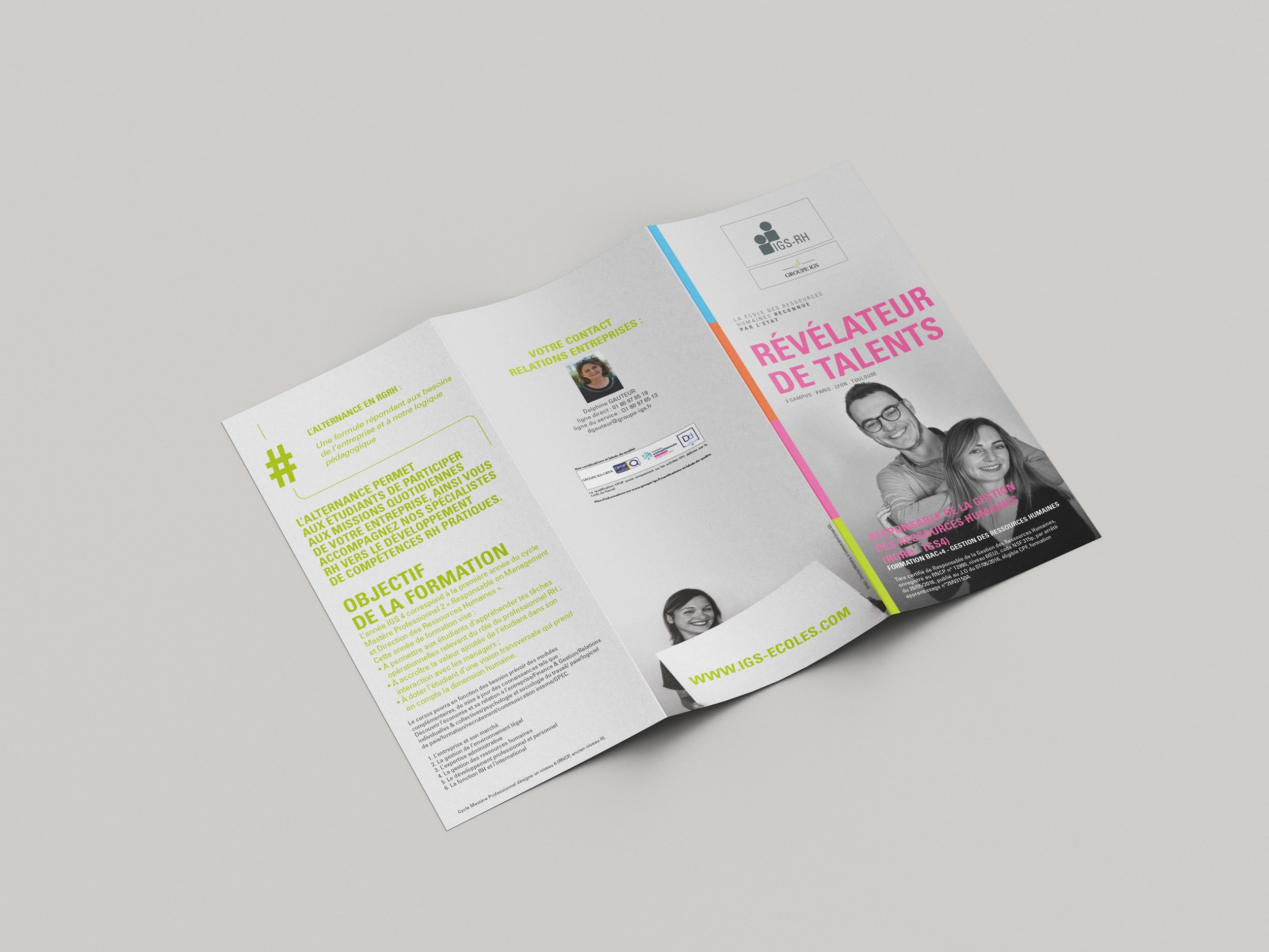 J’ai réalisé un dépliant 3 volets pour l’école IGSRH du Groupe IGS, présentant de manière concis et efficace la formation RGRH (Responsable de la Gestion des Ressources Humaines). Malgré son format réduit, ce dépliant est riche en informations, offrant une vue d’ensemble claire et détaillée de la formation. L’objectif était de valoriser le programme tout en restant accessible et impactant pour les futurs étudiants. Le design est moderne et professionnel, reflétant l’excellence de l’IGSRH et la qualité de ses formations.