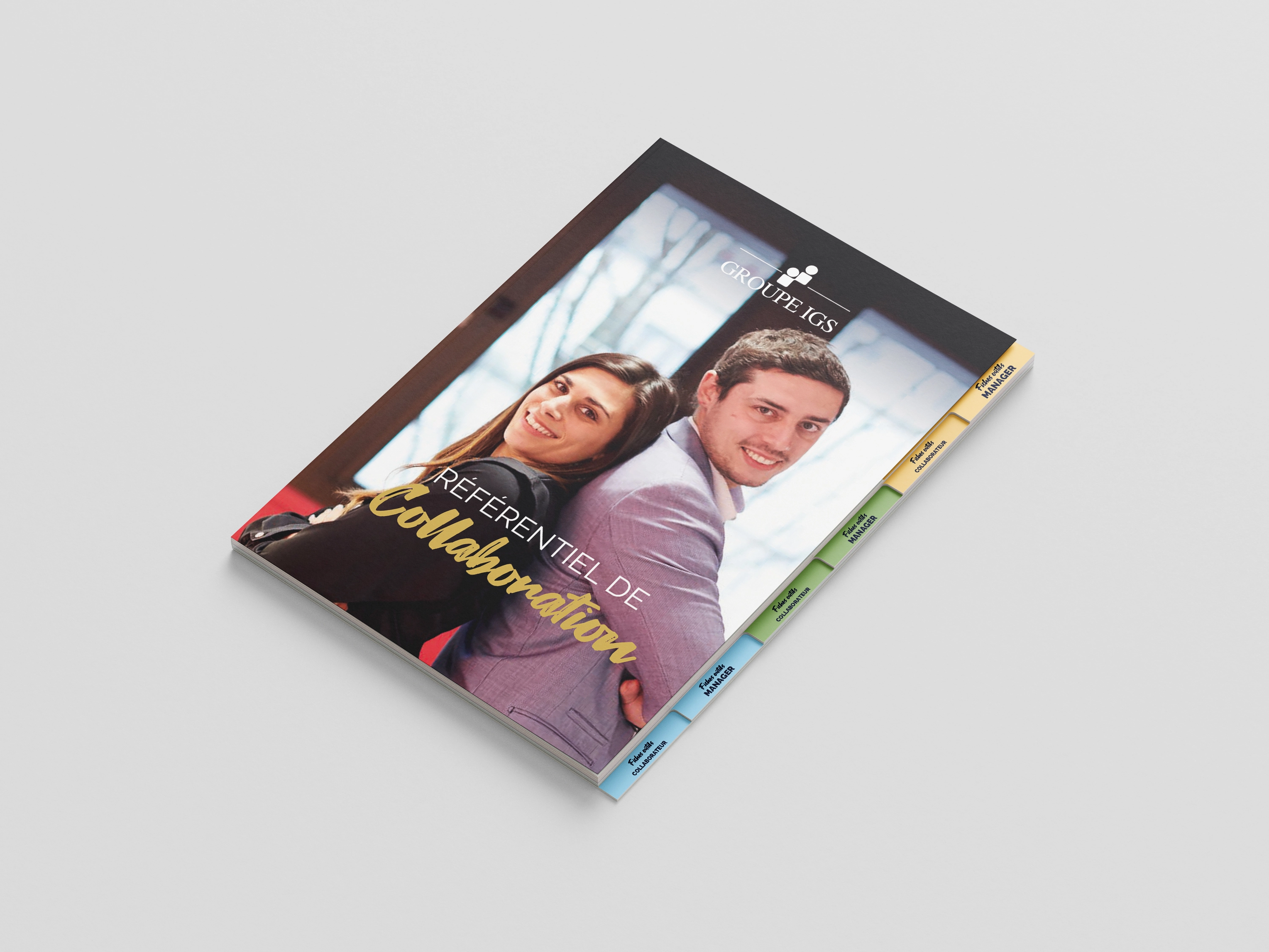Dans le cadre de notre collaboration, nous avons travaillé ensemble sur l’élaboration d’un Référentiel de collaboration, un document stratégique qui s'inscrit dans une direction artistique déjà existante. Ce référentiel a été conçu pour établir un cadre commun, définissant clairement les exigences et attentes vis-à-vis de chaque membre de l'organisation, avec pour objectif ultime la réussite collective du Groupe IGS.