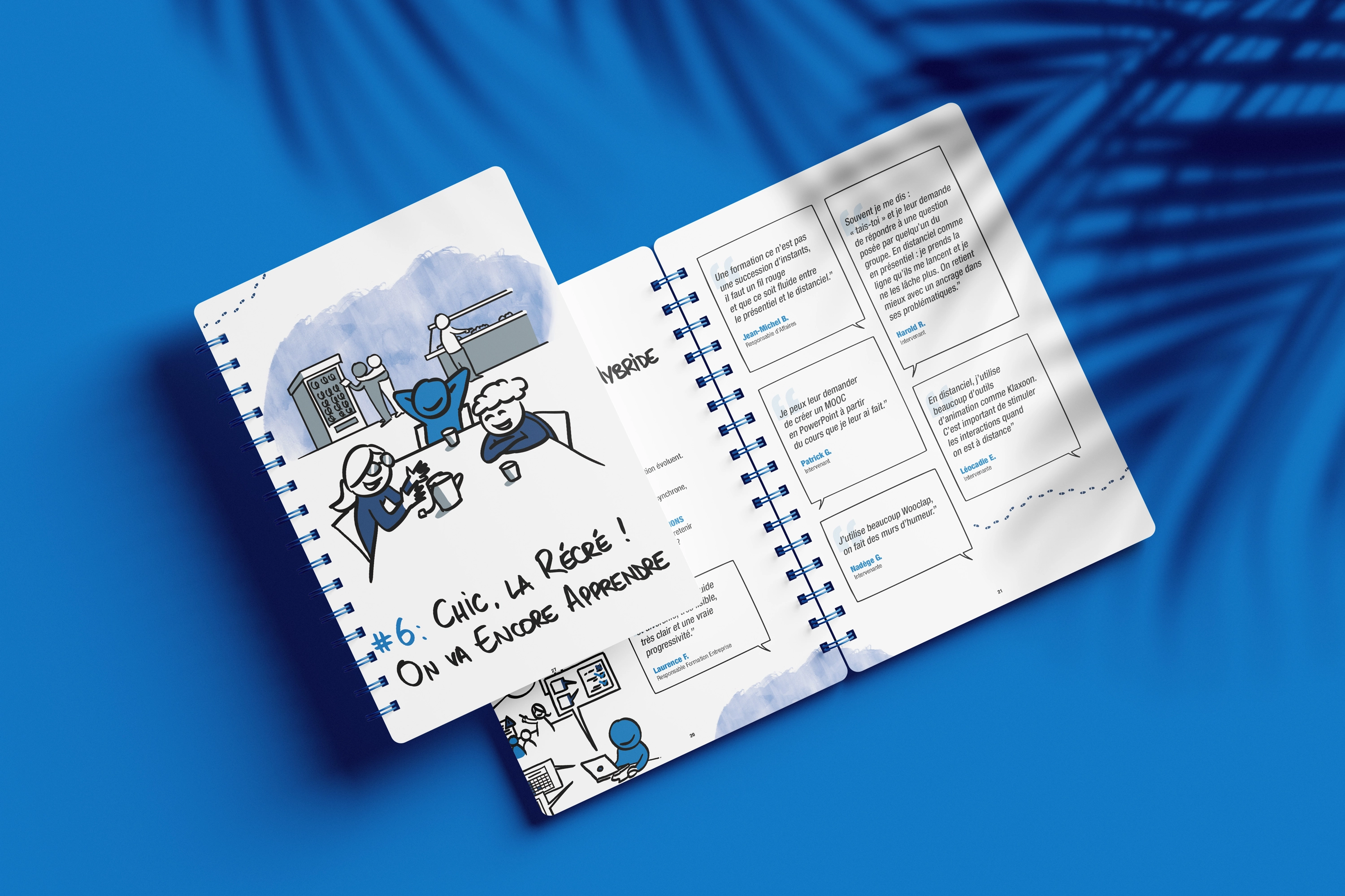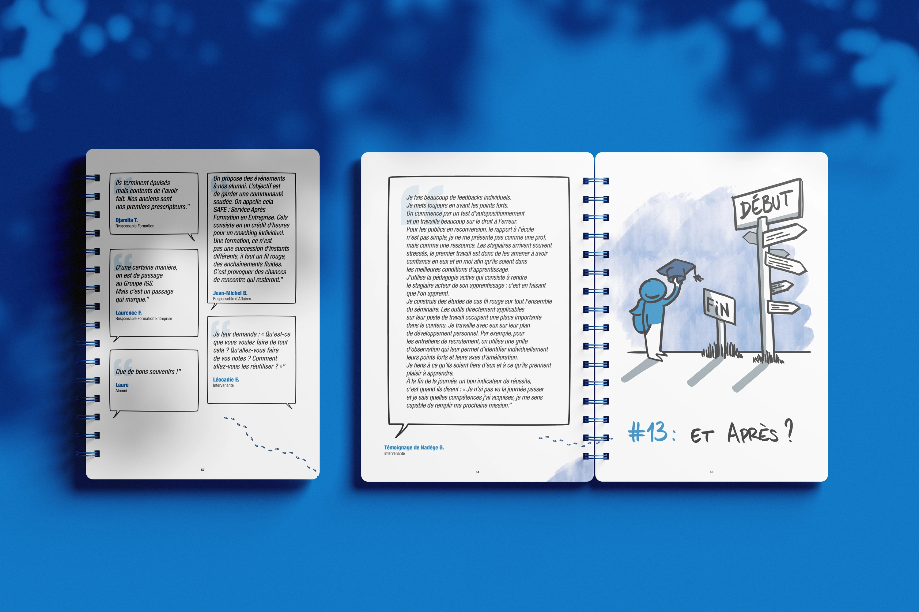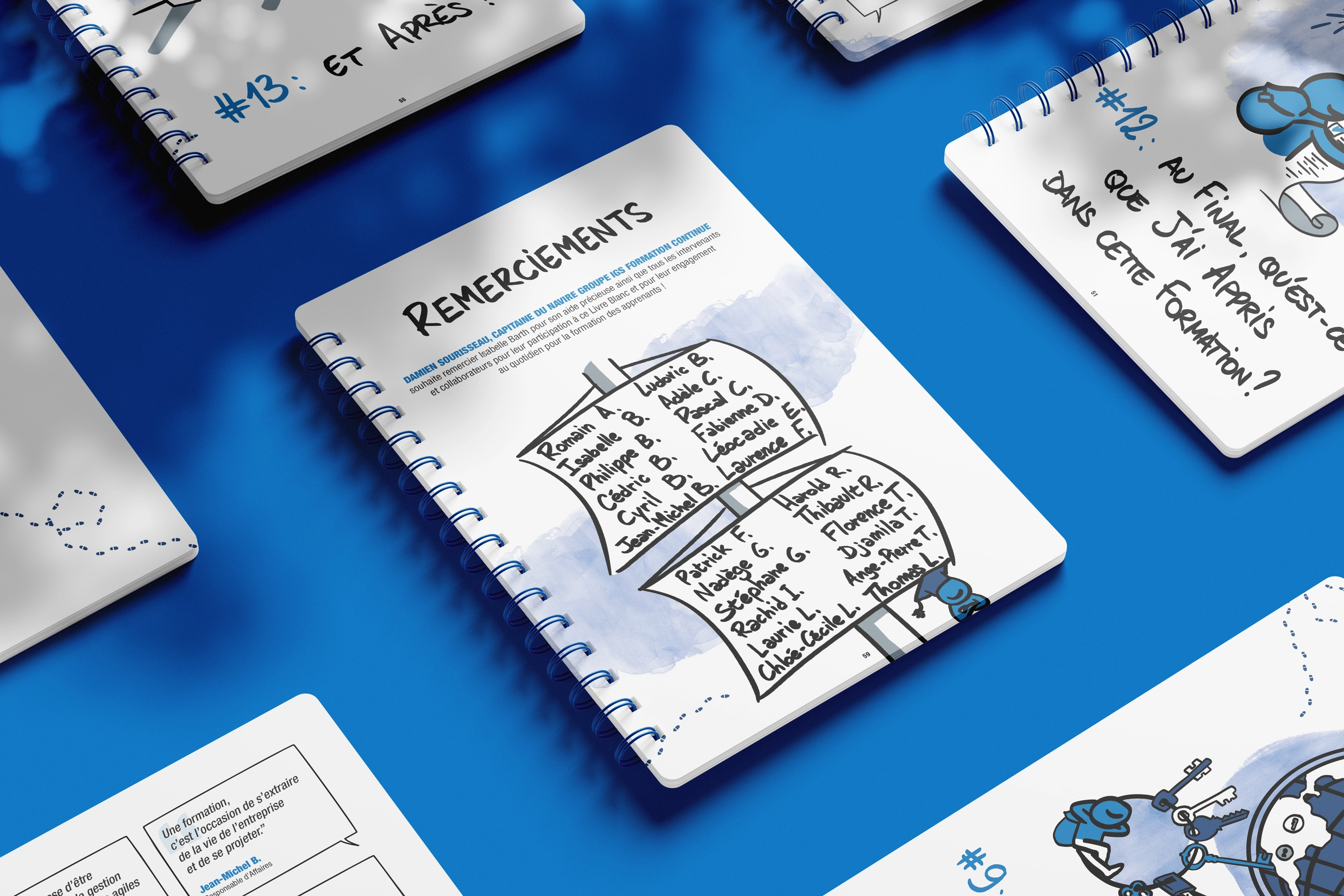 En collaboration avec Cyril Bonnot, illustrateur, nous avons donné vie à ces témoignages à travers un document structuré en 13 étapes. Chaque étape entremêle les objectifs de formation avec des anecdotes captivantes, offrant ainsi une perspective unique sur le parcours d’apprentissage.